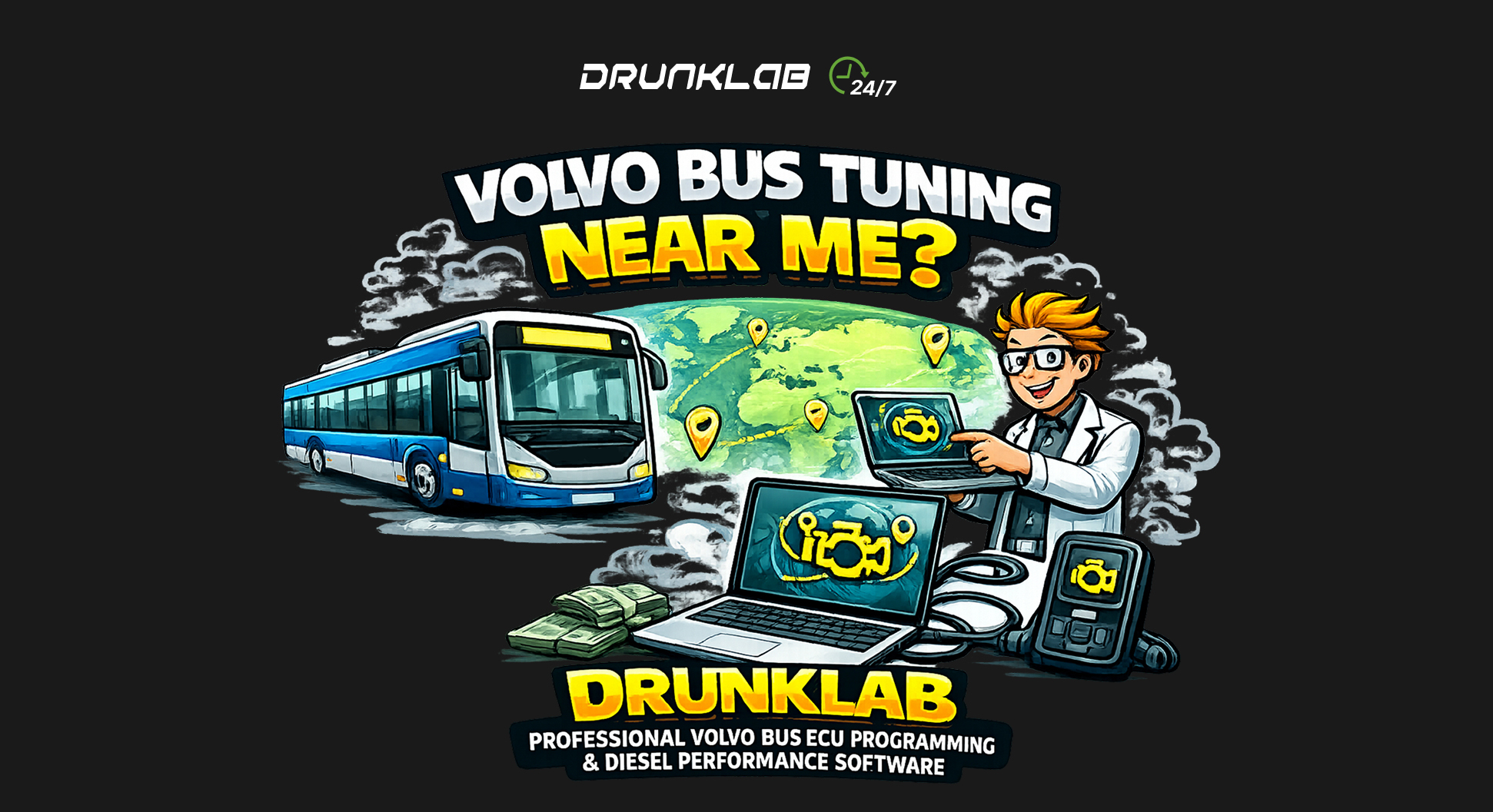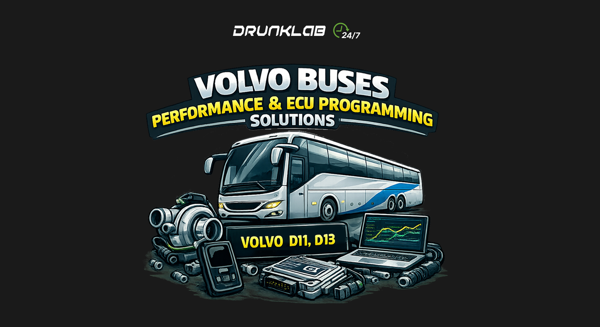 DrunkLab provides advanced ECU programming, emissions system optimization, and remote software solutions for Volvo buses worldwide — helping fleet operators restore efficiency, eliminate derate events, and improve long-term reliability.