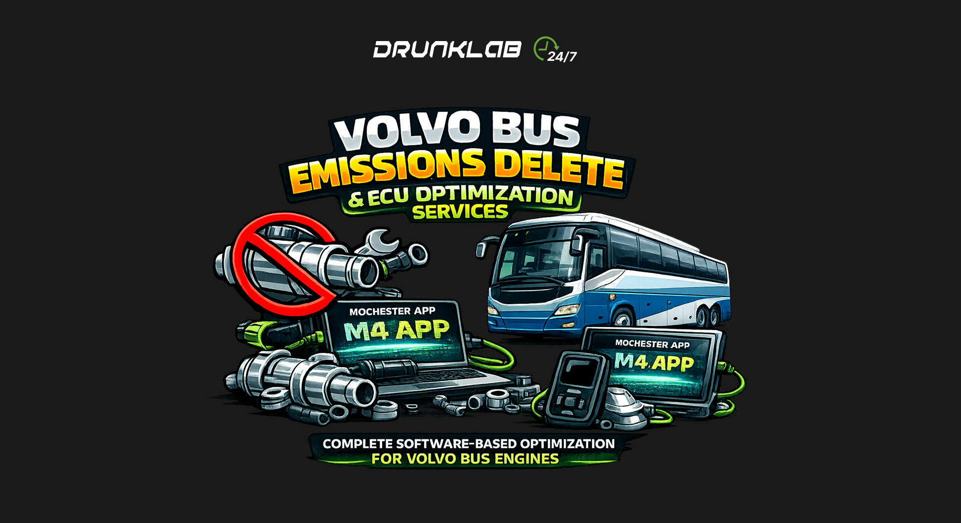 Using proprietary Mochester App (M4 App) technology and advanced diagnostic tools, DrunkLab provides complete software-based optimization for Volvo bus engines.