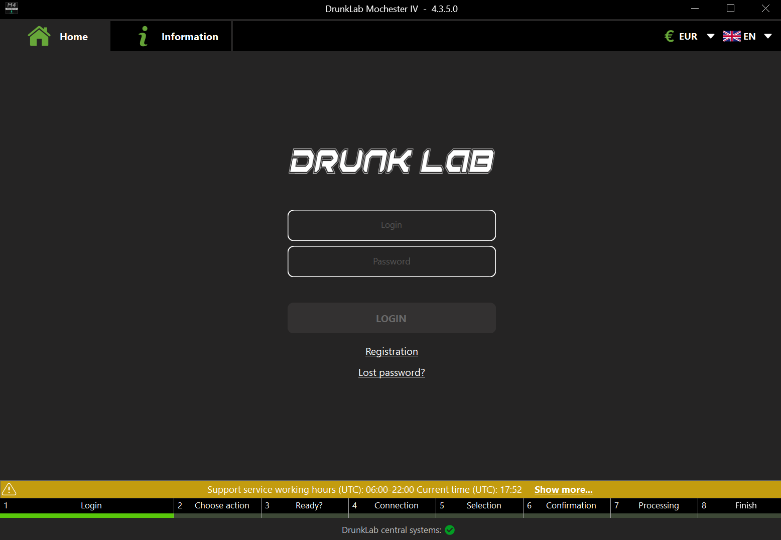 Please note the “Support” and “Information” tabs on this screen, highlighted in red. You can use the “Support” tab to contact our support team. The “Information” tab contains a detailed guide for the Mochester 4.